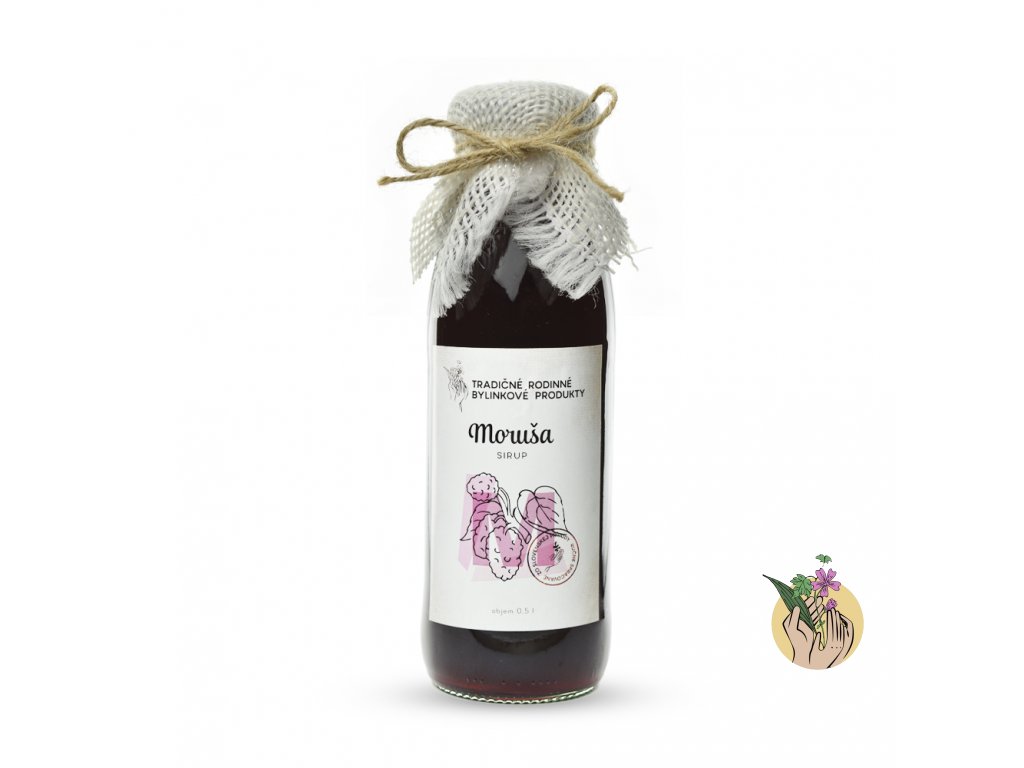 Zloženie: šťava z plodov a vodný extrakt z listov moruše čiernej, sacharóza, kyselina: kys. citrónová. Bez pridaných konzervantov, umelých sladidiel, aróm, farbív a zahusťovadiel. Ošetrené pasterizáciou.